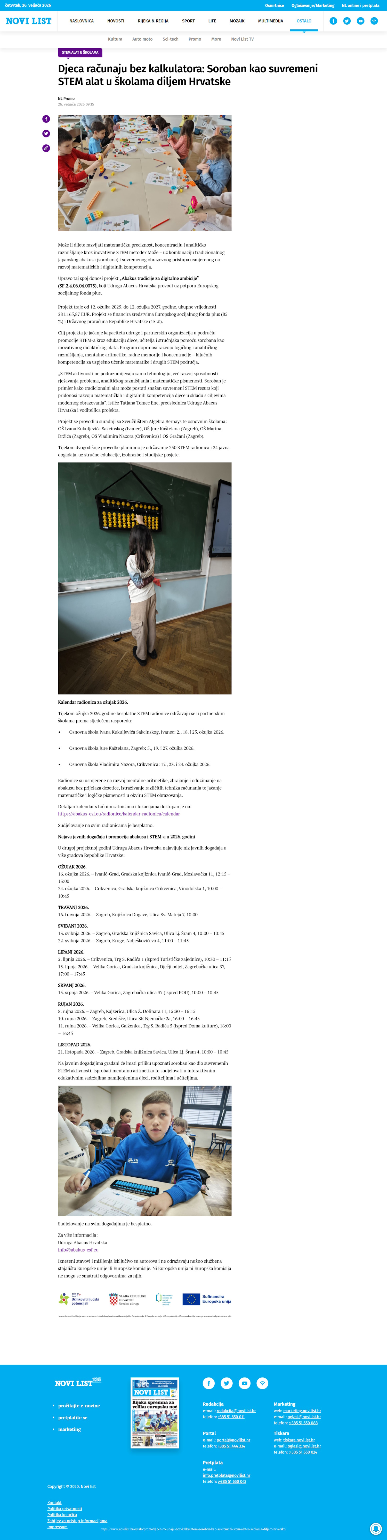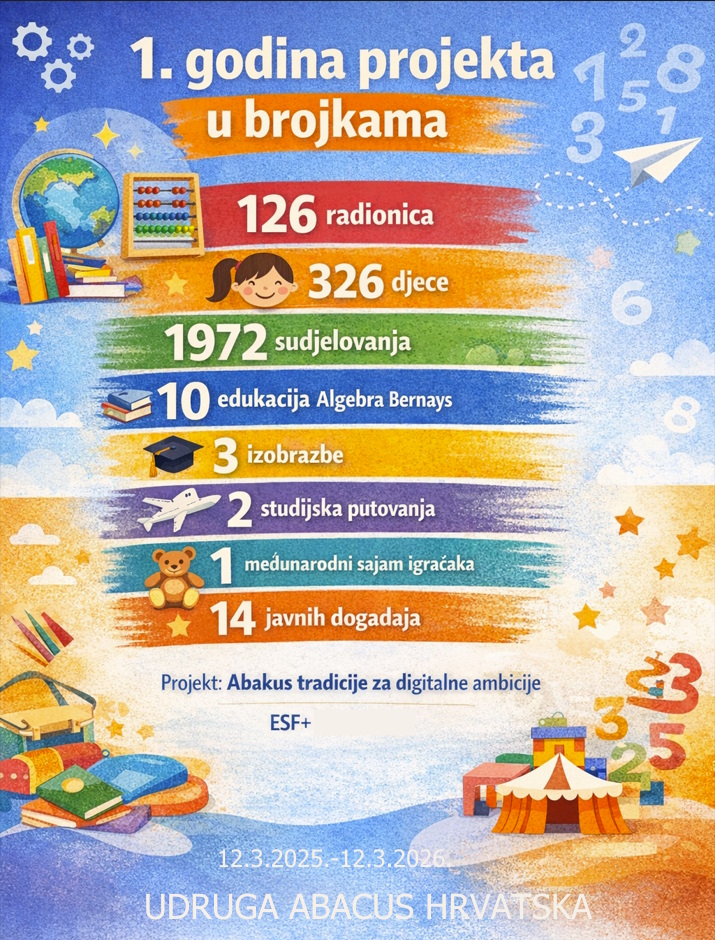 Dana 12. ožujka 2026. završava prva projektna godina ESF+ projekta „Abakus tradicije za digitalne ambicije“, koji provodi Udruga Abacus Hrvatska.