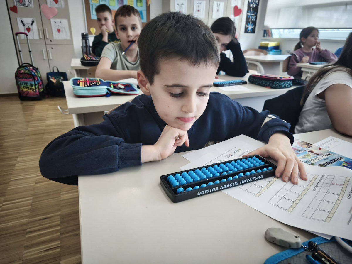 Radionica je bila usmjerena na produbljivanje vještina rada na soroban abakusu, pri čemu su sudionici uvježbavali zbrajanje i oduzimanje kroz zadatke s dvostrukim prijelazima. Ovakav oblik rada zahtijevao je visoku razinu koncentracije, preciznosti i mentalne organizacije, a polaznici su kroz postupno vođene aktivnosti razvijali sigurnost i stabilnost u izvođenju računalnih operacija bez oslanjanja na pisane tragove. Poseban naglasak stavljen je na razumijevanje strukture broja i pravilno izvođenje prijelaza, što je dodatno osnažilo njihovu mentalnu fleksibilnost.