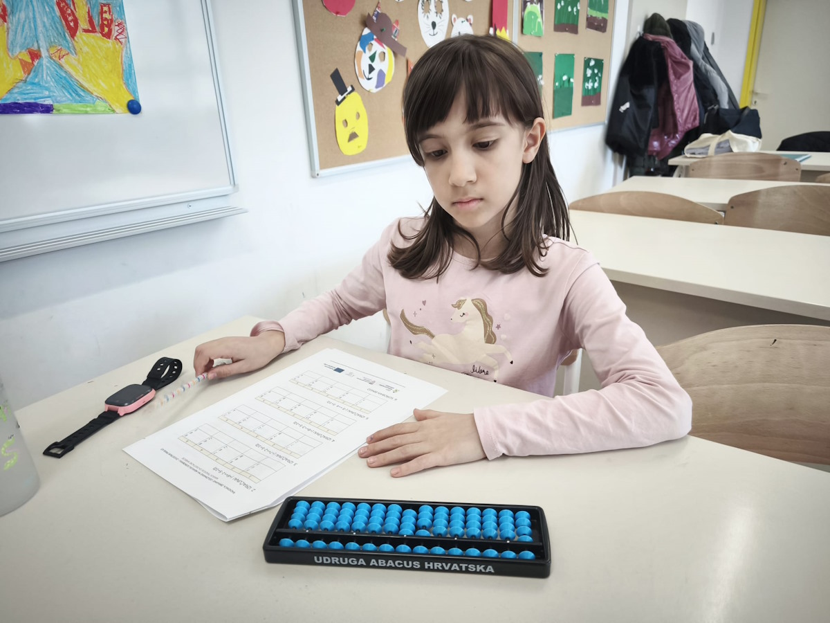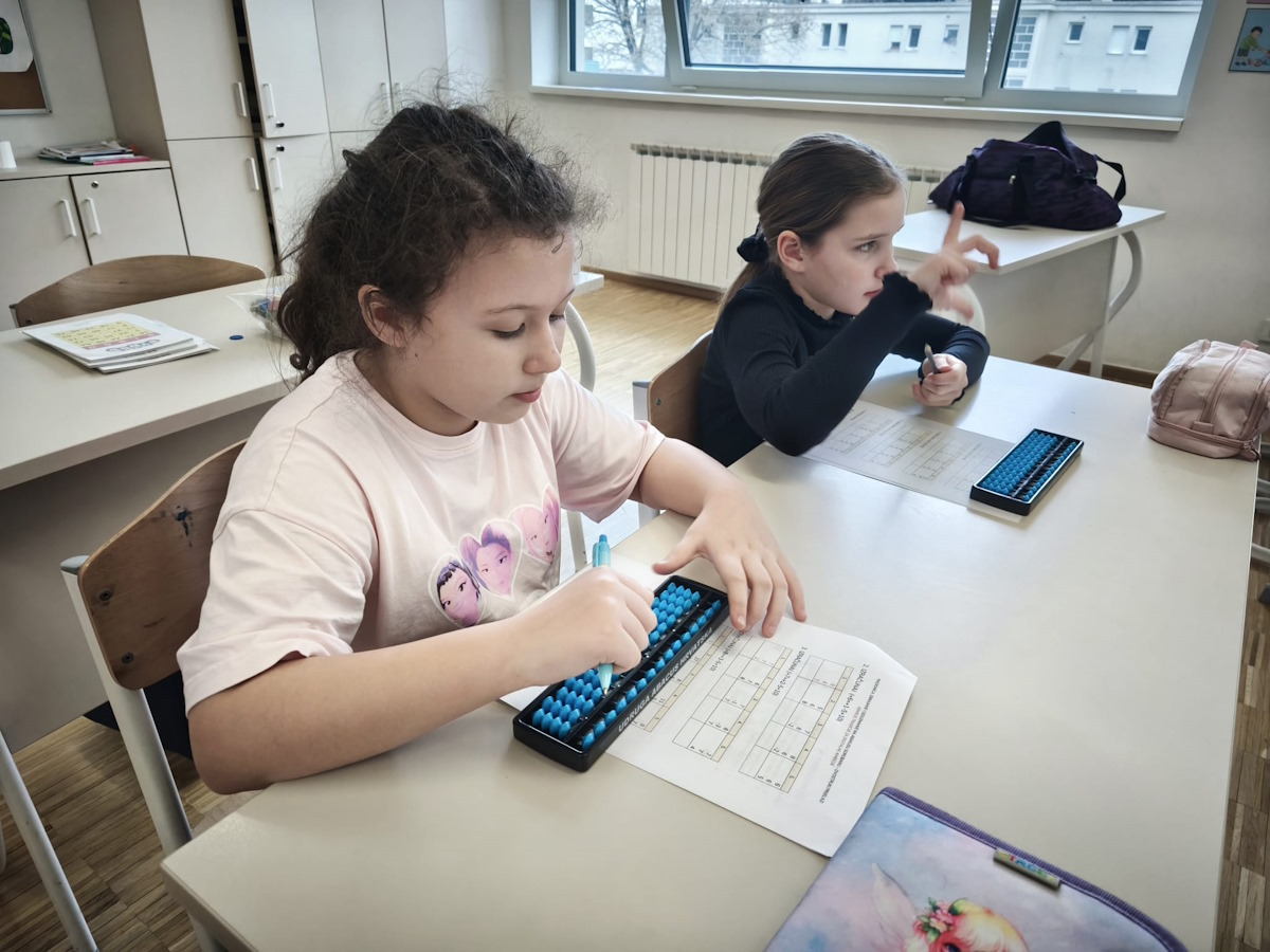 Radionica je bila usmjerena na produbljivanje vještina rada na soroban abakusu, pri čemu su sudionici uvježbavali zbrajanje i oduzimanje kroz zadatke s dvostrukim prijelazima. Ovakav oblik rada zahtijevao je visoku razinu koncentracije, preciznosti i mentalne organizacije, a polaznici su kroz postupno vođene aktivnosti razvijali sigurnost i stabilnost u izvođenju računalnih operacija bez oslanjanja na pisane tragove. Poseban naglasak stavljen je na razumijevanje strukture broja i pravilno izvođenje prijelaza, što je dodatno osnažilo njihovu mentalnu fleksibilnost.