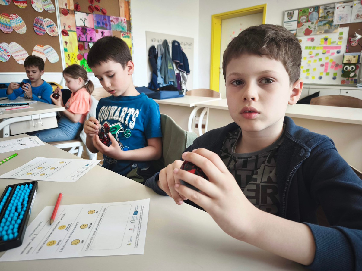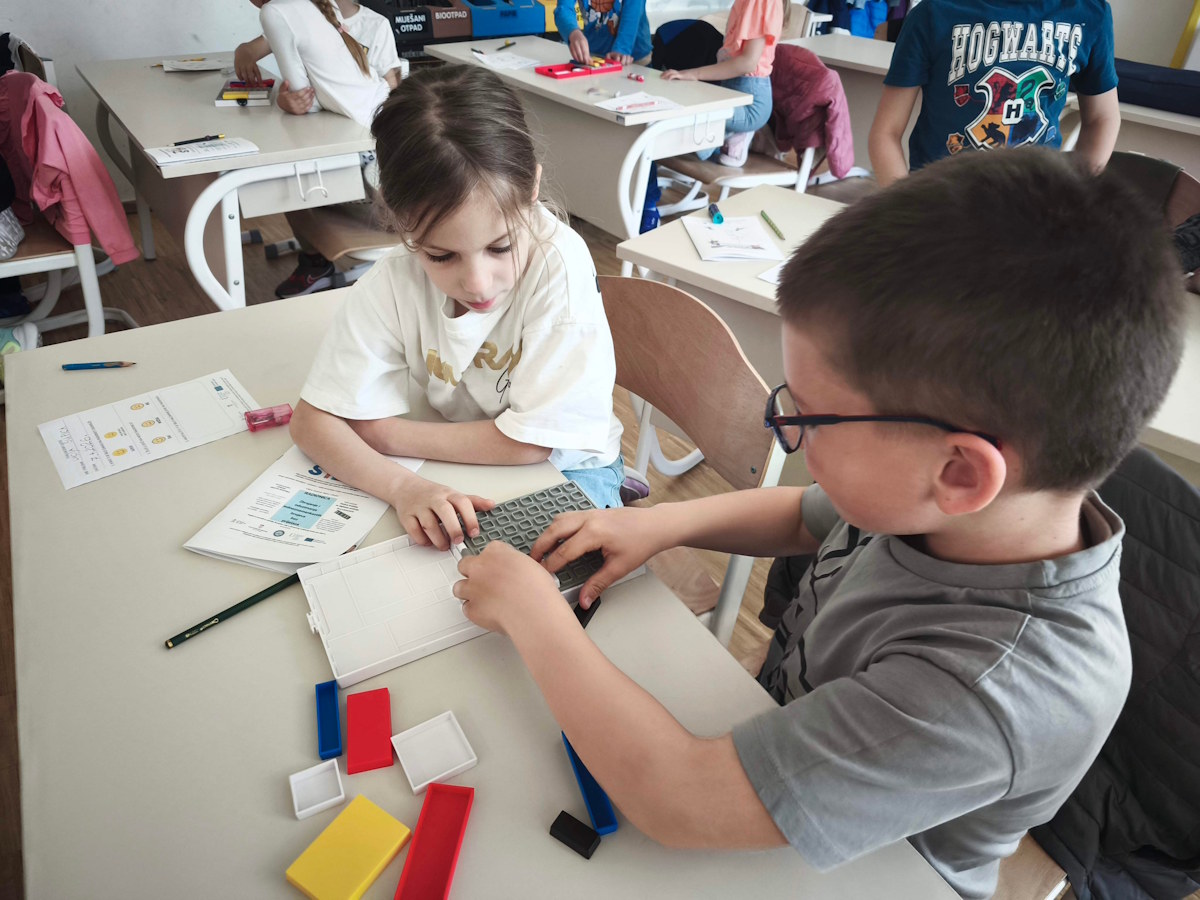 Radionica je djeci na zanimljiv i pristupačan način približila prve matematičke korake kroz zbrajanje i oduzimanje jednoznamenkastih brojeva bez prijelaza. Kroz rad na japanskom abakusu – sorobanu, uz korištenje Numicona, pametnih jaja i Mondrian blocks alata, učenici su razvijali logičko mišljenje, prostornu orijentaciju, finu motoriku i vizualno razumijevanje brojeva. Poseban naglasak bio je na učenju kroz igru, praktičan rad i iskustveno istraživanje, čime su matematički sadržaji postali djeci bliski, jasni i poticajni.
