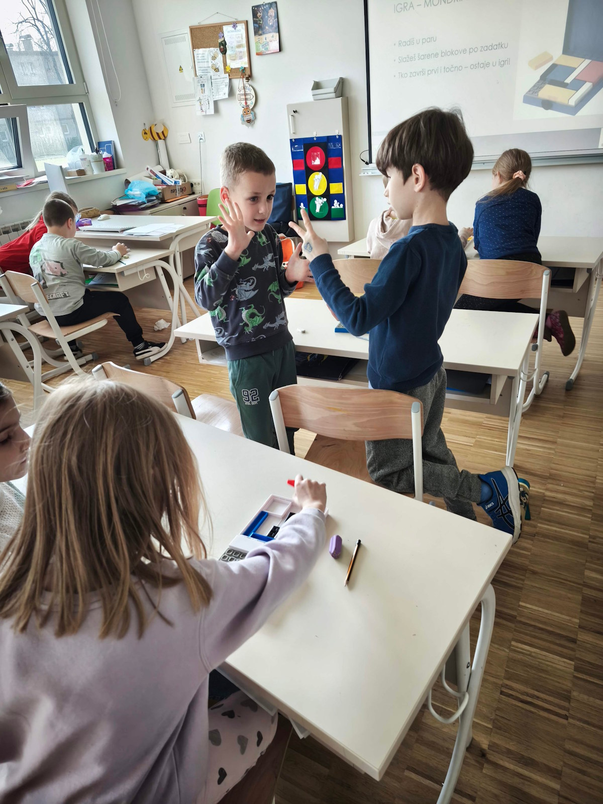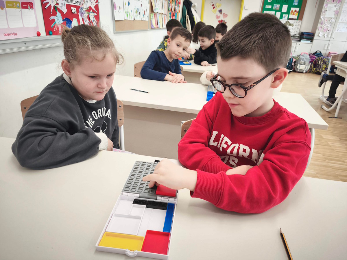 🧩 Rad s Mondrian blokovima poticao je kreativno razmišljanje, snalaženje u prostoru i suradnju među učenicima.