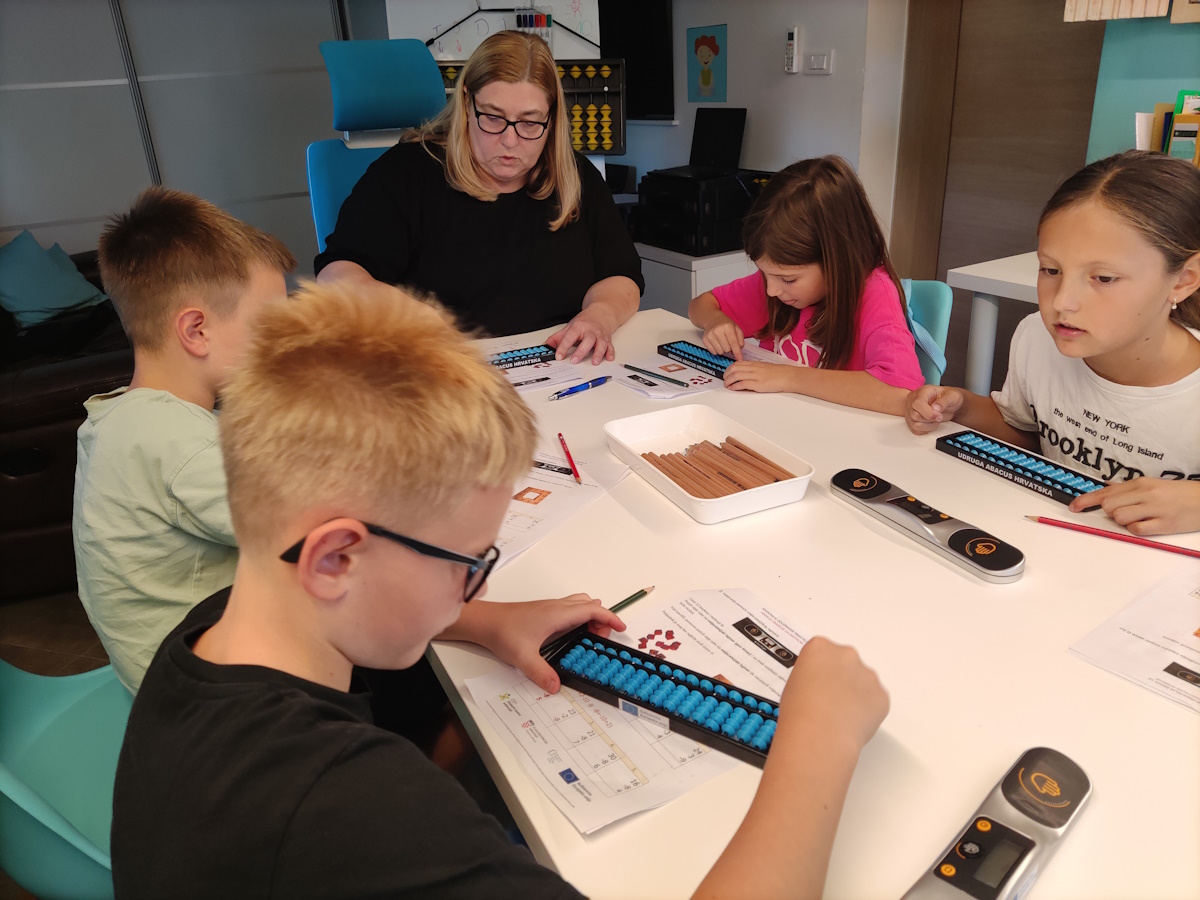 U glavnom dijelu radionice djeca su učila i uvježbavala oduzimanje pomoću prijatelja broja 10. Kroz objašnjenje formula (-9 = +1 –10, -8 = +2 –10, -7 = +3 –10, -6 = +4 –10, -5 = +5 –10), demonstraciju na učiteljskom sorobanu te rad u listićima, djeca su uspješno savladala nove matematičke korake. Aktivnosti su dodatno obogaćene povezivanjem s kockicama brojalicama, što je učvrstilo razumijevanje pojma.