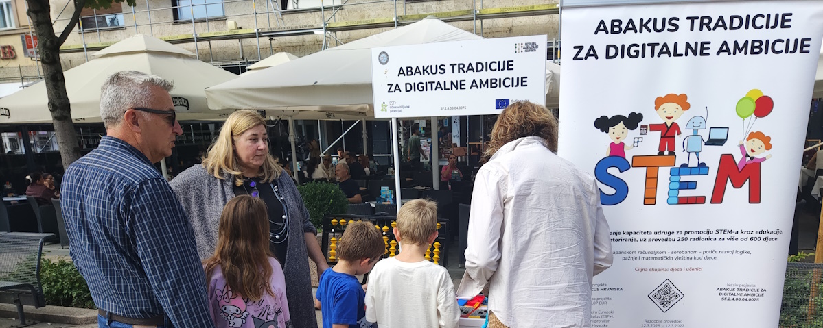 U sklopu projekta Abakus tradicije za digitalne ambicije, Udruga Abacus Hrvatska organizira još jedan u nizu javnih STEM događaja – ovaj put na otvorenom prostoru - park ispred OŠ Mladost Utrine, Karamanov prilaz 3