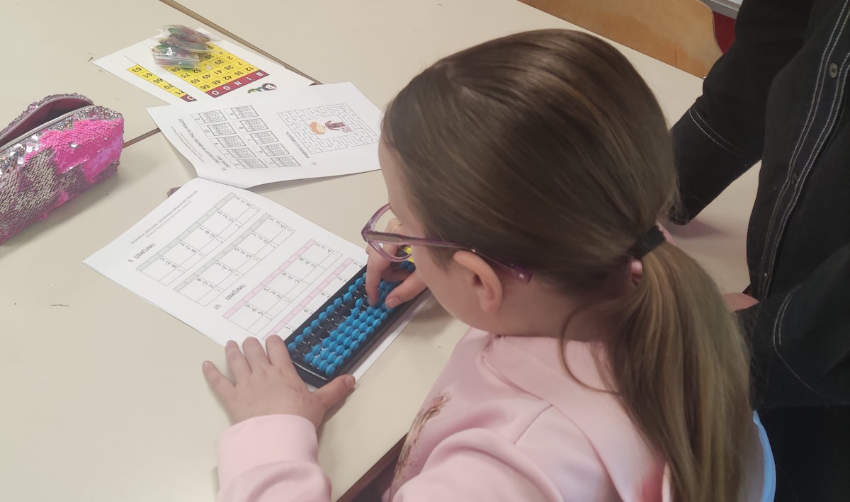 Na današnjoj radionici djeca su uronila u svijet brojeva na potpuno nov način – koristeći soroban, tradicionalni japanski abakus, učila su zbrajati i oduzimati jednoznamenkaste brojeve bez prijelaza, oslanjajući se na vizualne i taktilne podražaje.