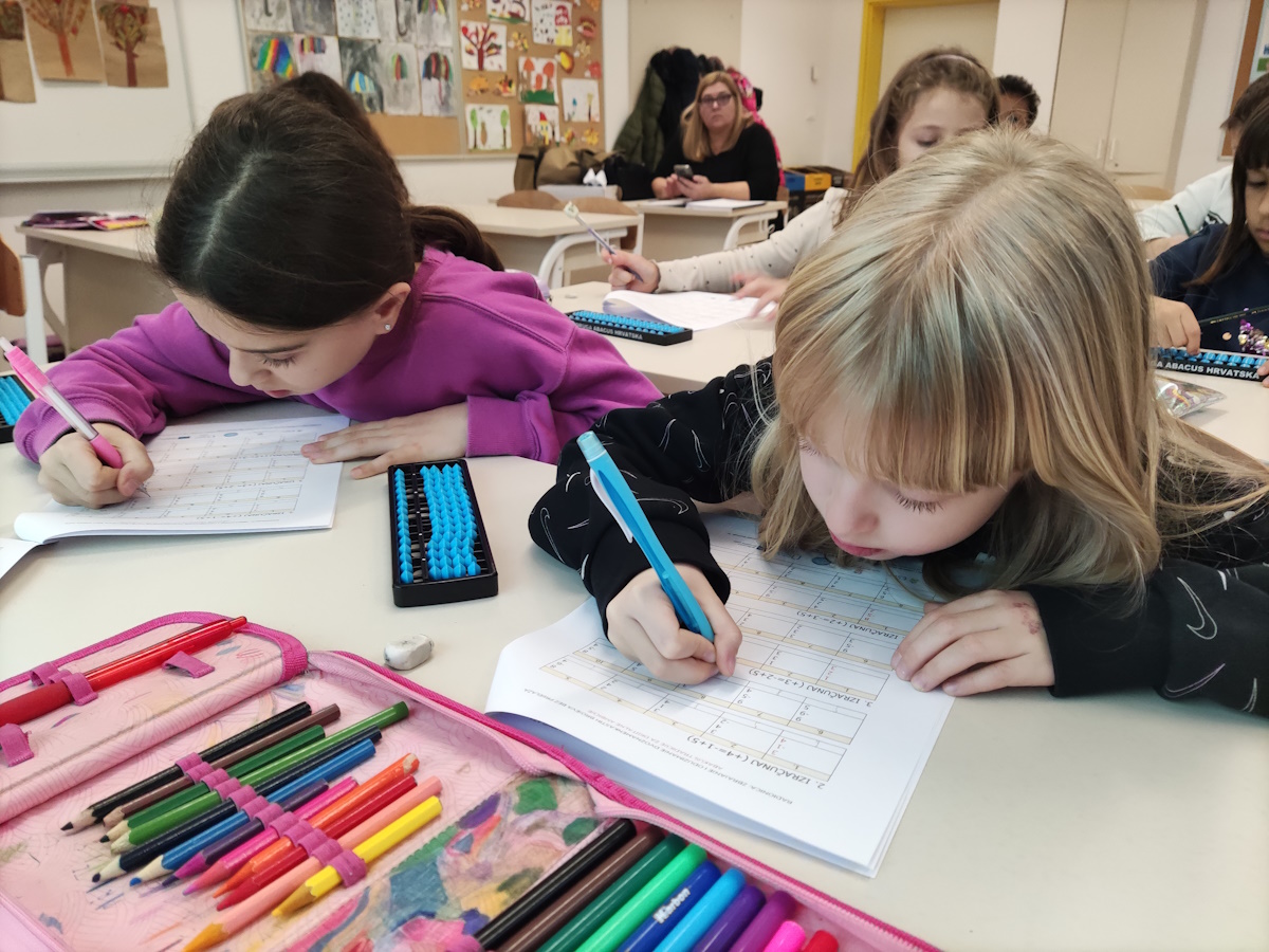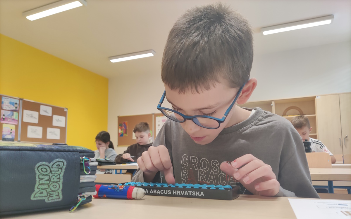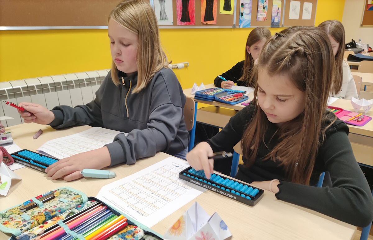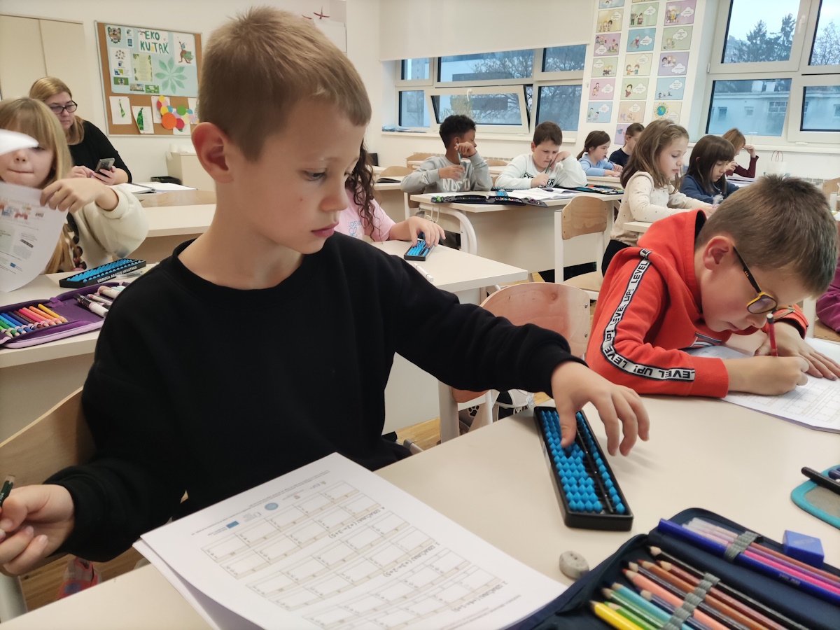 Na današnjoj radionici učenici su upoznali pojam prijatelja broja 5 kroz aktivnosti na japanskom abakusu – sorobanu. Kroz konkretne primjere i vizualni prikaz učili su prepoznavati brojeve koji zajedno čine 5 te primijeniti tu logiku u računanju. Ovaj pristup učenicima je bio jednostavan i intuitivan, pa su brzo uočili kako računanje može postati brže, jasnije i zanimljivije.