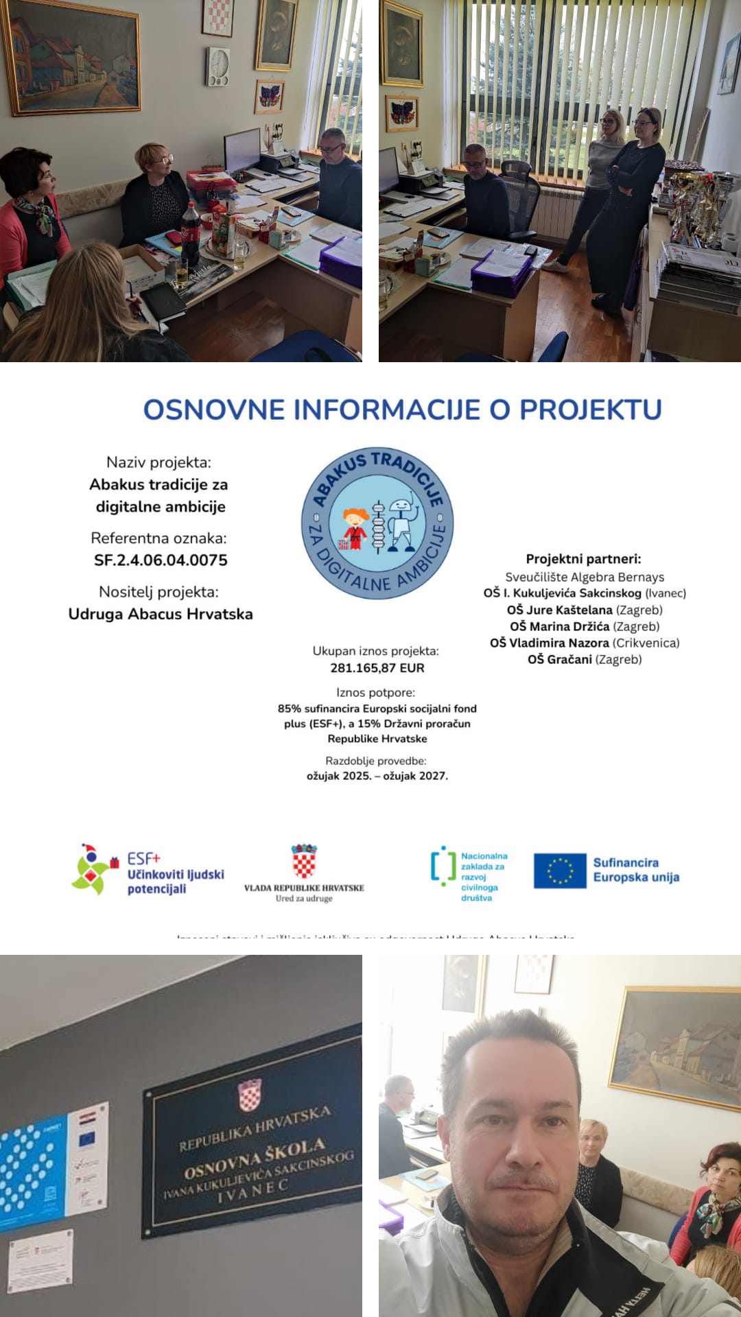 Danas smo posjetili naše partnere iz Osnovne škole Ivana Kukuljevića Sakcinskog u Ivancu, gdje smo zaokružili uvodne sastanke i dogovorili sve ključne korake za uspješnu provedbu projekta.