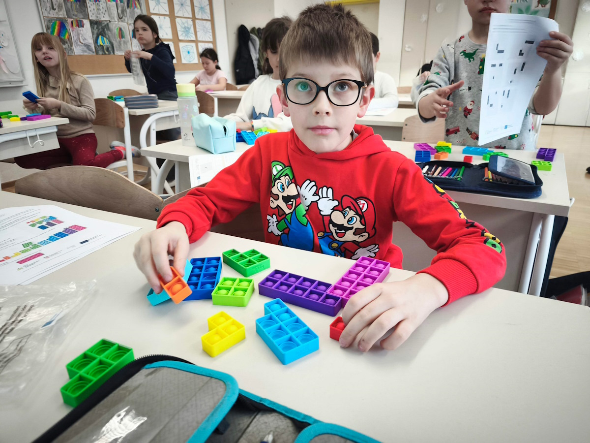 Radionica je bila usmjerena na razvoj brojevne fleksibilnosti, logičkog i prostornog razmišljanja kroz povezivanje matematičkih pojmova s konkretnim i vizualnim aktivnostima. Djeca su istraživala prijateljske parove broja 10 koristeći soroban i Numicon pločice, dok su Rubikove kocke i Mondrian Blocks dodatno poticale prepoznavanje uzoraka, struktura i odnosa među brojevima i oblicima.