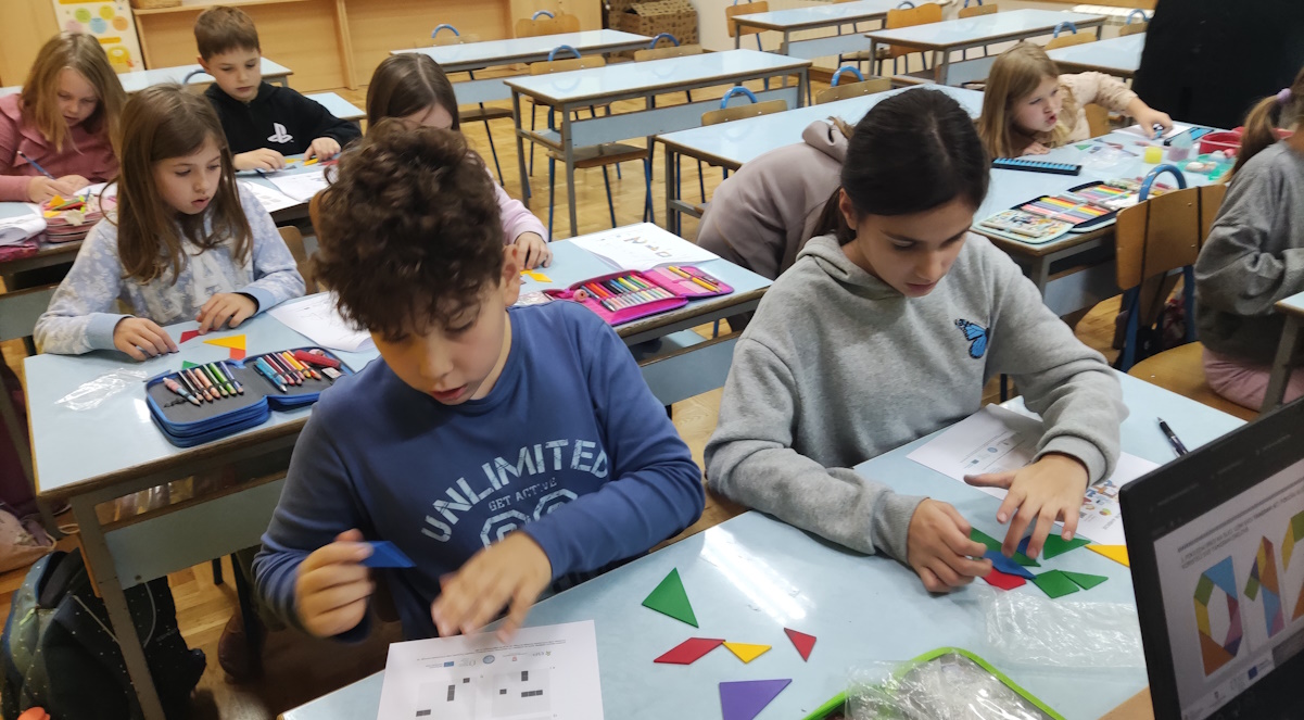 Poseban naglasak stavili smo na povezivanje računanja s igrom i suradničkim učenjem. Osim rada na sorobanu, djeca su sudjelovala u zabavnom izazovu s Mondrian blocks i slagala tangrame, čime su dodatno razvijala prostornu orijentaciju i logičko zaključivanje.