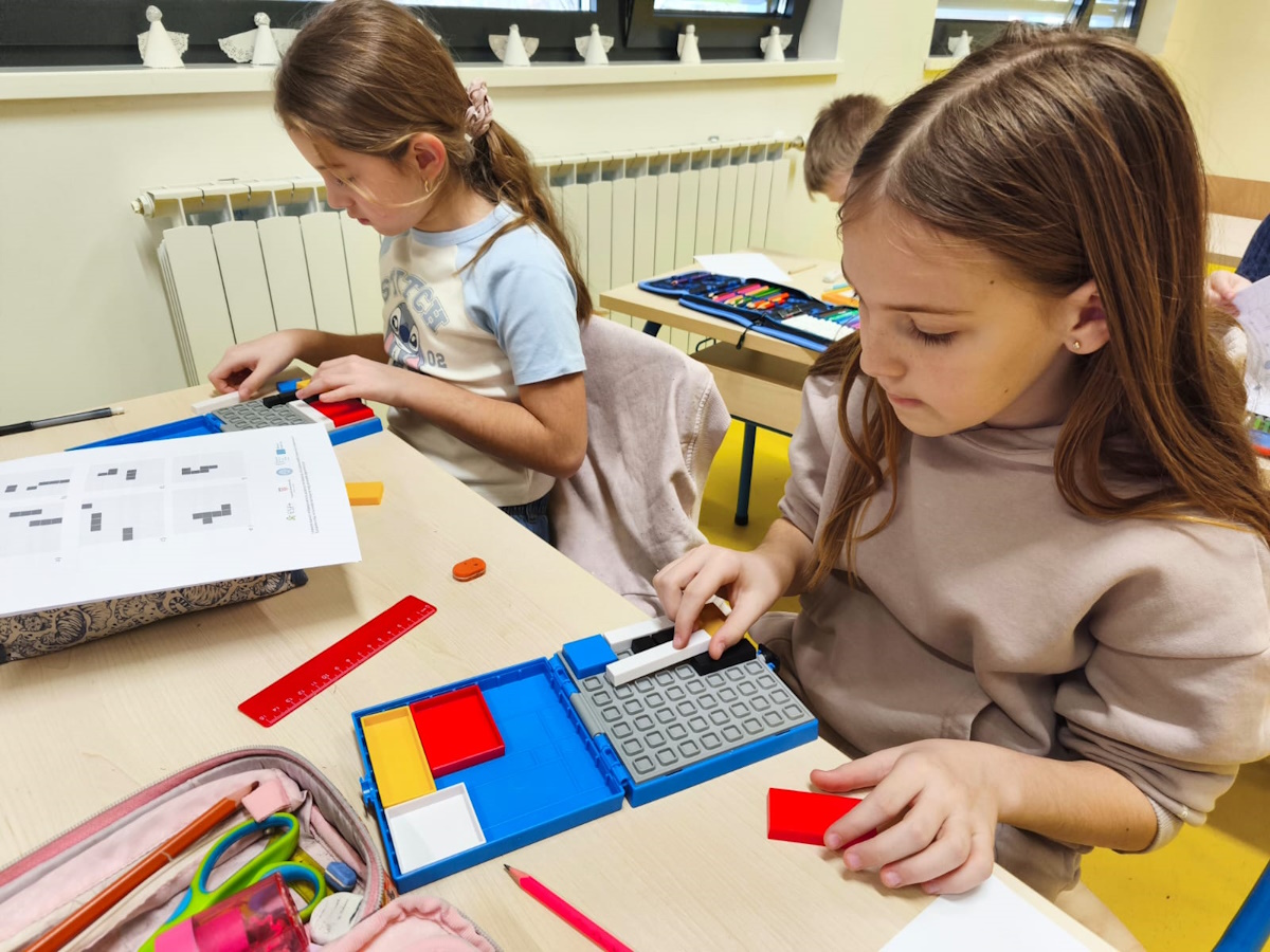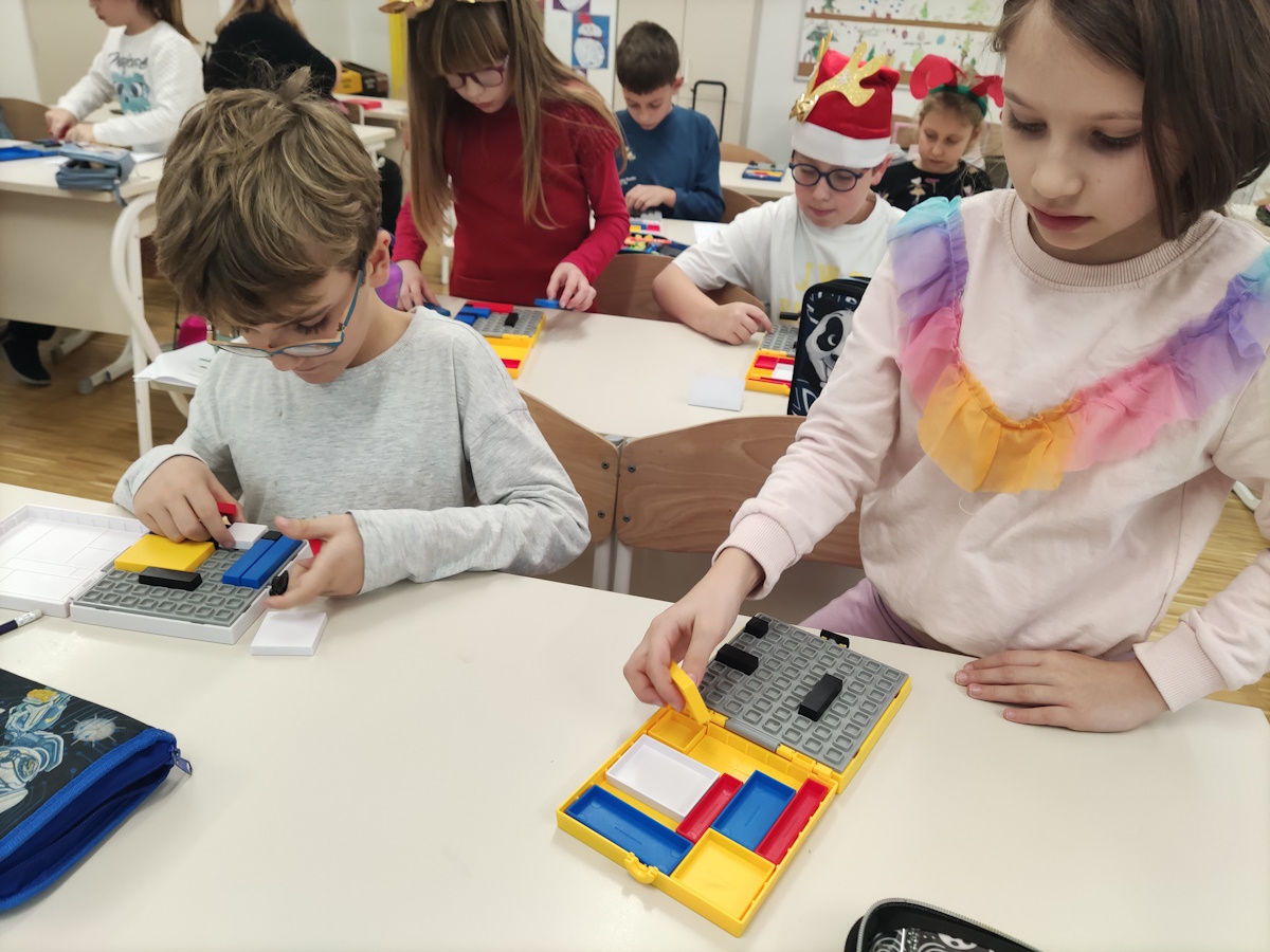 U završnom dijelu radionice rješavali su zadatke Mondrian Blocks. Označavanjem crnih polja i slaganjem elemenata u zadani prostor, učenici su razvijali prostornu logiku, planiranje i strateško razmišljanje.