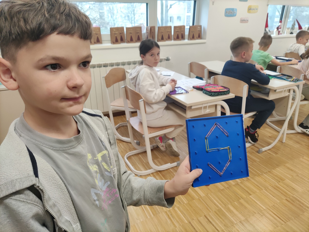 Radionica je započela radom na geo pločama, gdje su učenici oblikovali slova S, T, E i M te kroz igru razvijali finu motoriku, prostorne odnose i početno razumijevanje STEM pojma.