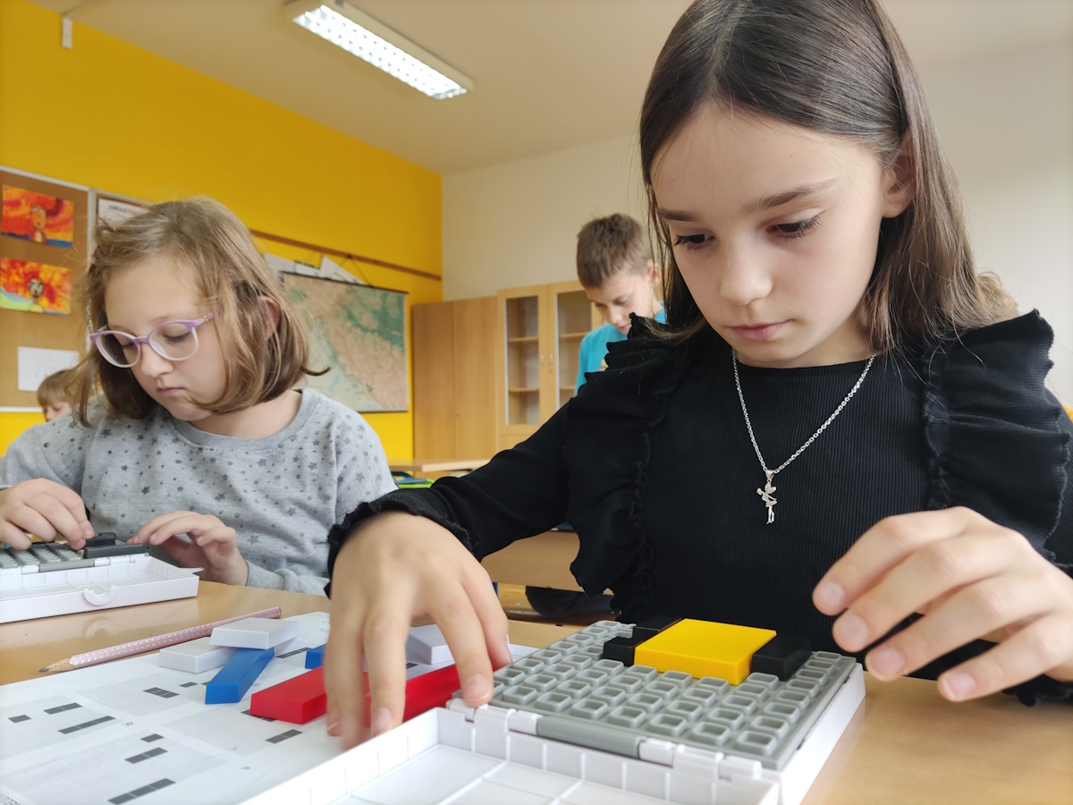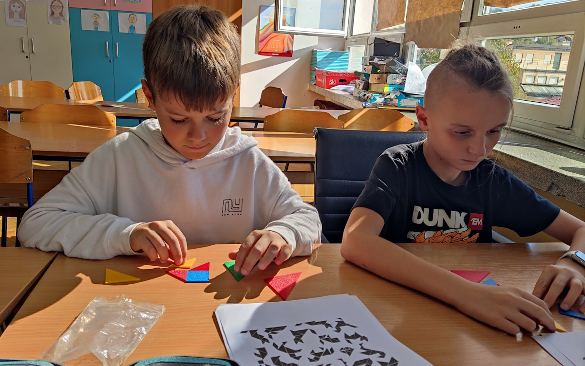 Učenici su kroz igru i jasno vođene korake savladali prikaz desetica i jedinica na sorobanu te zbrajanje i oduzimanje bez prijelaza. Uvodni tangram izazovi zagrijali su prostornu percepciju i fokus, a glavne aktivnosti (radne brošure, mentalna vizualizacija kuglica s obje ruke) učvrstile su algoritamsko razmišljanje i preciznost. Za kraj smo odigrali timske igre — Soroban Bingo i Mondrian blocks — koje su dodatno potaknule logiku, suradnju i koordinaciju ruka–oko. 🎯 Rezultat: bolja vizualna i mentalna slika brojeva, veća koncentracija i samopouzdanje u računanju.